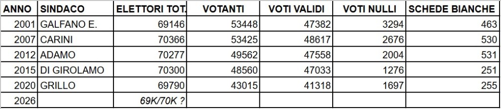 Statistica: Un pò di numeri febbraio 26, 2026 paolinomaltese Marsala al voto dal 2001 ad oggi. Condividi: Condividi su X (Si apre in una nuova finestra) X Condividi su Facebook (Si apre in una nuova finestra) Facebook Mi piace Caricamento... Correlati Pubblicato da paolinomaltese Vedi tutti gli articoli di paolinomaltese